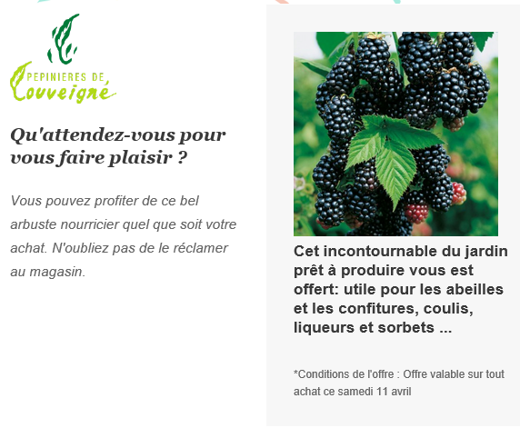 Nous offrons à chaque client un magnifique Murier Black Satin d'une valeur de 10 euros pour chaque achat ce samedi 11 avril